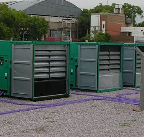 Servicio de alquiler de grupos electrógenos con operación y mantenimiento. Empresa de Energía Río Negro S.A., El Bolsón: 6 MW, 13.2 kV, equipos diesel y gas. Ente Provincial de Energía de Neuquén, Villa la Angostura: 3.6 MW, 13.2 kV, equipos diesel. Ente Provincial de Energía de Neuquén, Junín de los Andes: 1.75 MW, 13.2 kV, equipos diesel (generación durante cortes programados).