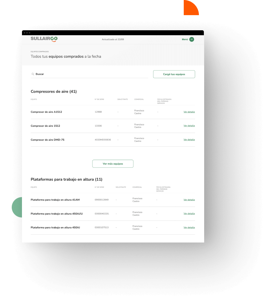 El Usuario declara conocer la Política de privacidad de Sullair Argentina y acepta el uso de tecnología ''cookies'' en el Sitio.